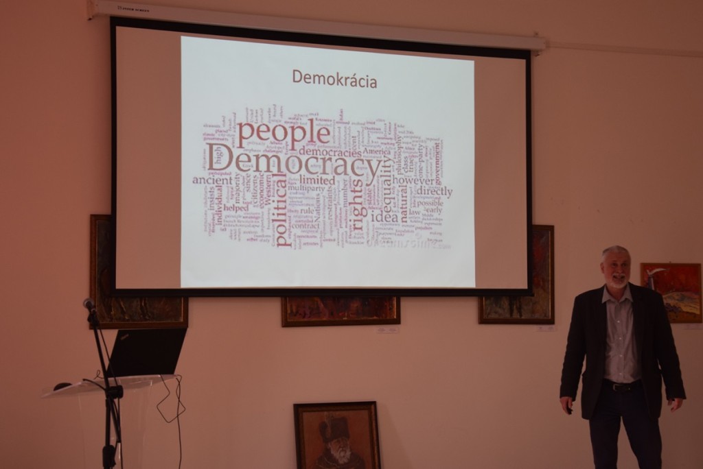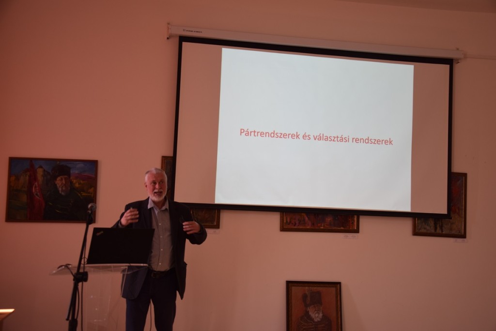 Після цього розпочалася лекція Золтана Кантора на тему «Виборчі системи та партійні системи». Спершу лектор висвітлив особливості взаємодії між нацією, державою та суспільством, розкривши сутність понять «виборча система», «партійна система», «політична ідеологія» та «політичний устрій». Студенти дізналися більше про історію зародження політичних партій, їхні функції та вплив різних суспільних процесів на діяльність політичних партій. Окрім того, присутні дізналися про особливості функціонування політичних партій під впливом соціальних конфліктів. Доповідач також розглянув процес генезису політичних партій та етапи їхнього розвитку. Золтан Кантор представив основні типи партій – ліві, центристські, праві – та особливості їхнього функціонування, а також розповів про популістські, жартівливі та зелені партії та їхній вплив на суспільство. Доцент університету не оминув увагою питання взаємовідносин між партіями, особливості одно-, дво- та багатопартійної систем. Окрім того, він розтлумачив поняття політичної ідеології, яка, як відомо, також має вплив на формування суспільних угрупувань.