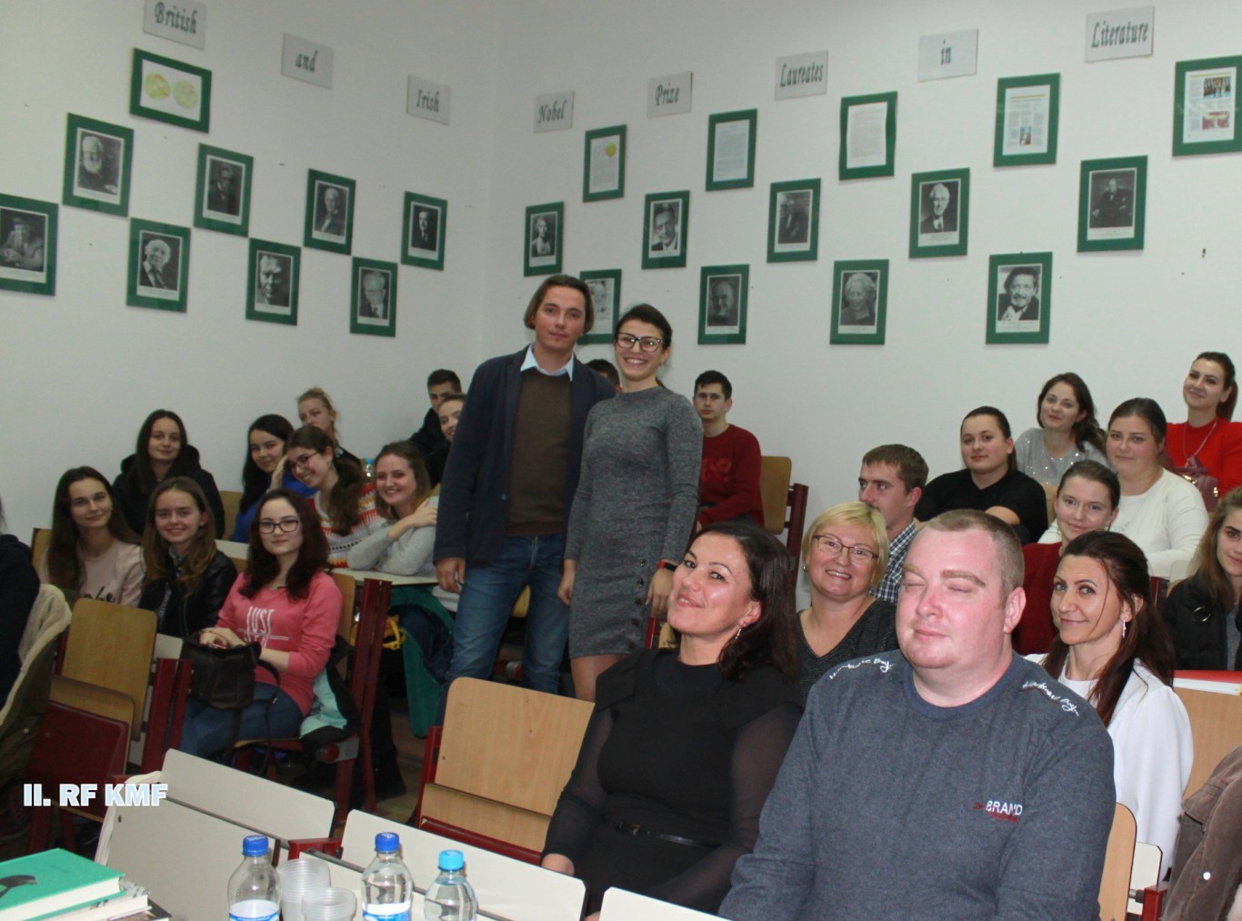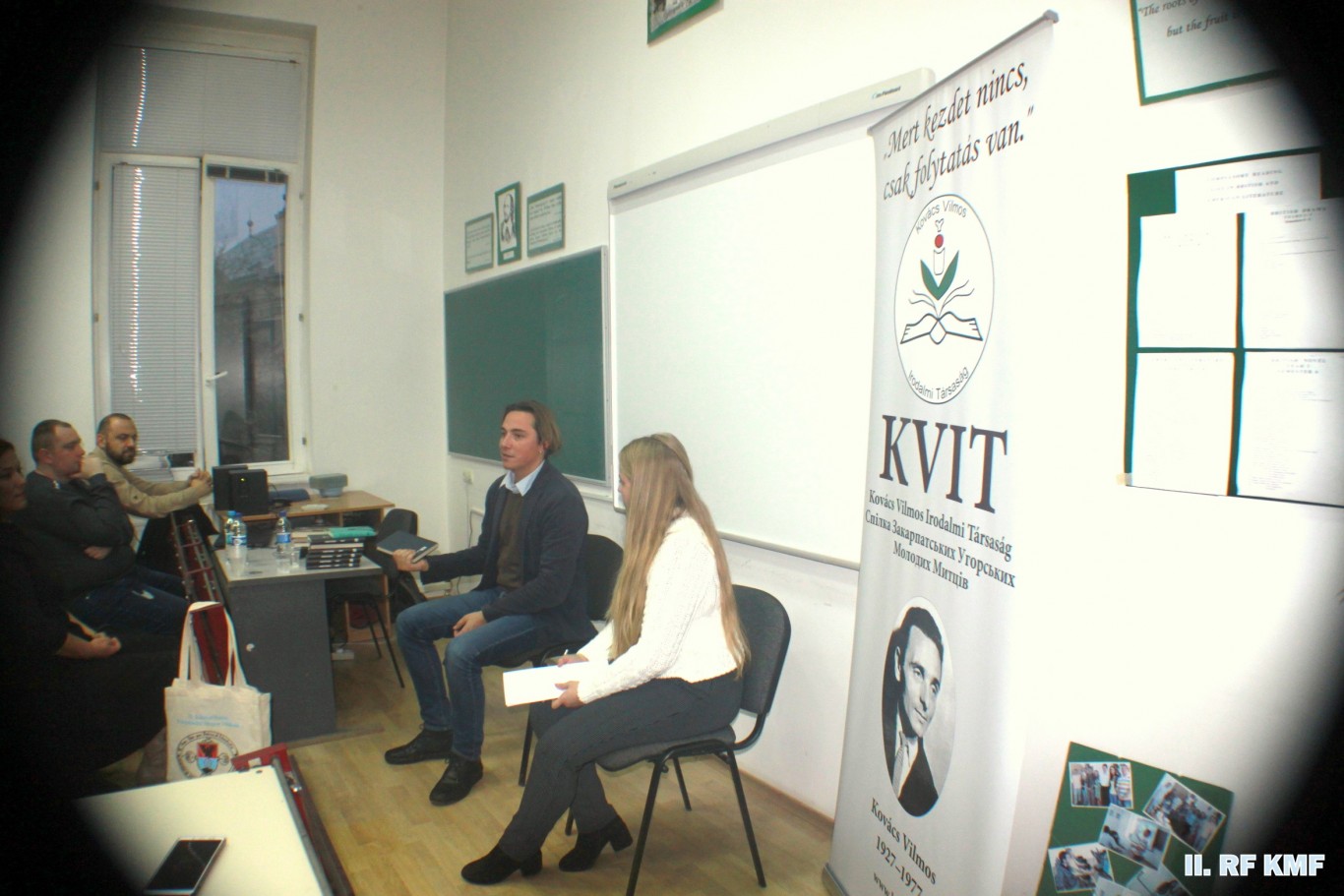 Літературне товариство імені Вільмоша Ковача у рамках проекту «Дні закарпатської угорської культури» організувало для студентів Закарпатського угорського інституту ім. Ф. Ракоці ІІ приємну зустріч. До закладу завітав молодий, але вже популярний по всій Україні прозаїк, поет, есеїст, перекладач Андрій Любка. Попри пізній час аудиторія заповнилася поціновувачами літератури. Модератором зустрічі була магістр ІІ курсу Естер Вайнраух. Пан Андрій розповів про свій творчий шлях, презентував книжки і прочитав кілька уривків, поділився письменницькими таємницями та планами на майбутнє, охоче відповів на запитання присутніх. Наприкінці письменник провів автограф-сесію. Зустріч була атмосферною та пізнавальною для всіх, про що свідчить допис молодого письменника: