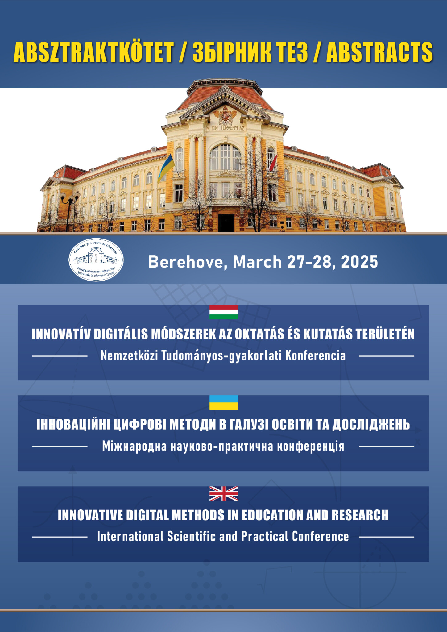 Збірник містить тези доповідей міжнародної науково-практичної конференції Інноваційні цифрові методи в галузі освіти та досліджень, яка відбулася 27–28 березня 2025 року в місті Берегове. Матеріали конференції охоплюють широке коло питань, пов’язаних із виявленням найновіших тенденцій у застосуванні інноваційних цифрових методів і засобів в освіті та науці. Конференція зосередилась на викликах та можли­востях інтеграції цифрових технологій у навчальний процес, а також на розвитку дослідницьких методів. Зокрема, тези доповідей конференції досліджують впро­вадження цифрових технологій у шкільну та вищу освіту, використання штучного інте­лекту, методичні інновації, алгебраїчні структури, теорію ймовірностей і моделювання, а також застосування цифрових інструментів у наукових дослідженнях. Учасники конференції обговорили підходи до вирішення актуальних питань, пов’язаних із засто­суванням інноваційних методів у навчанні, використанням штучного інтелекту у викла­данні математики, інтеграцією цифрових технологій у освітній процес, а також удоско­наленням методики викладання дисциплін у закладах вищої освіти. Особлива увага була приділена сучасним тенденціям у педагогічних дослідженнях та можливостям адаптації освітніх програм до потреб сучасного студентства. Організаторами конференції були кафедра математики та інформатики спільно з Науковим товариством студентів і молодих вчених Закарпатського угорського інституту імені Ференца Ракоці ІІ.