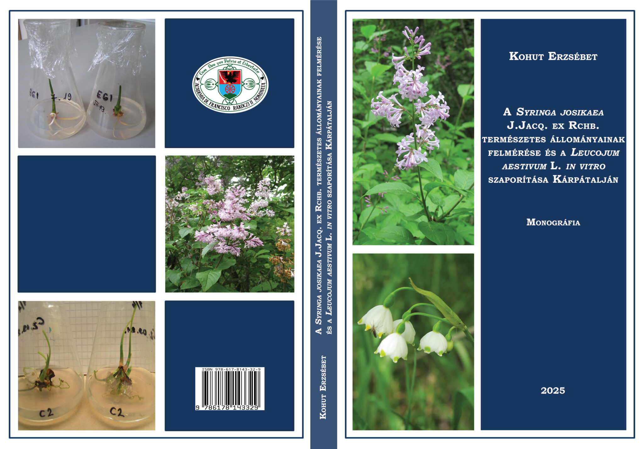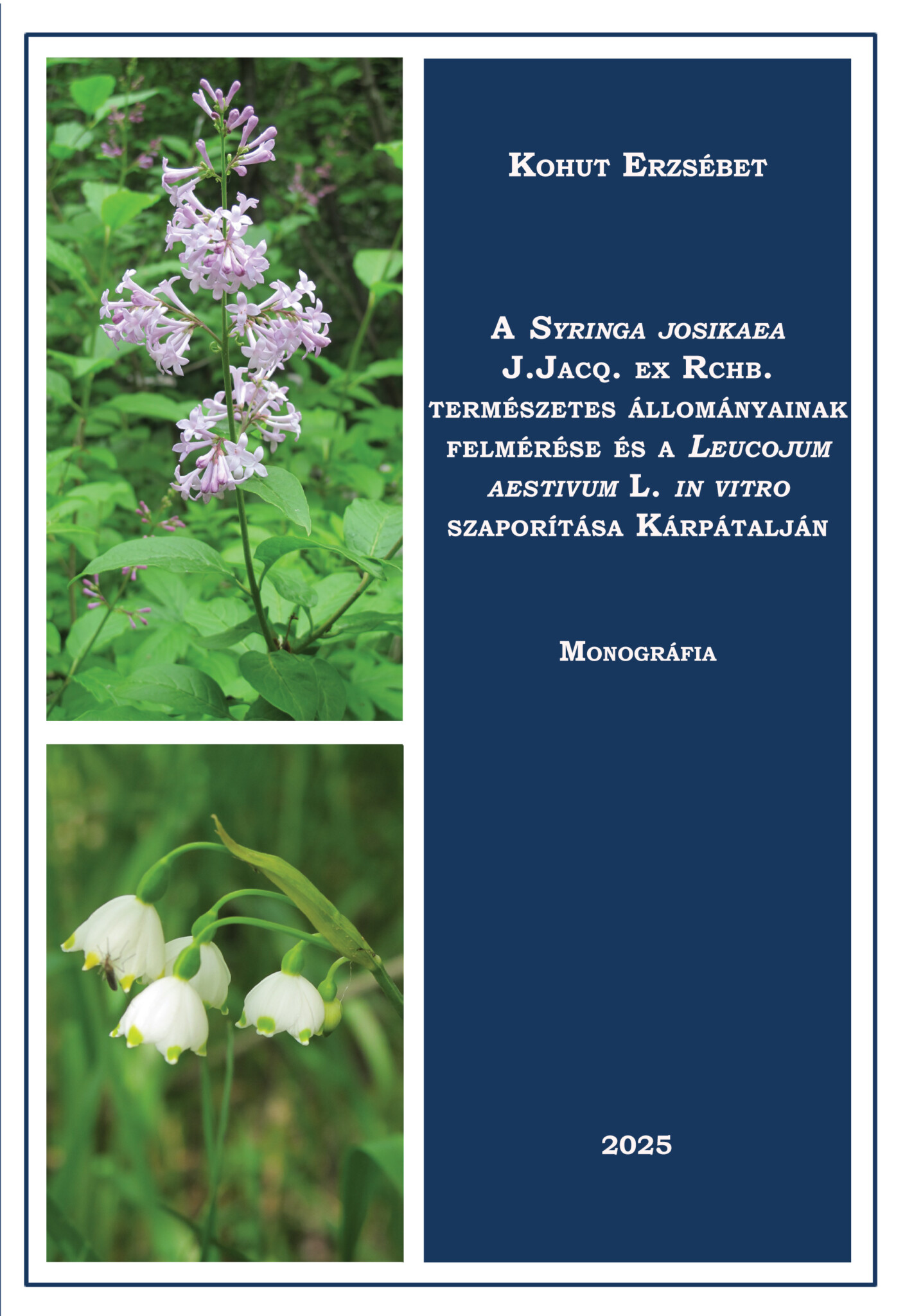Оцінка стану природних популяцій Syringa josikaea J.Jacq. ex. Rchb. та розмноження in vitro Leucojum aestivum L. на Закарпатті. Наукове видання (монографія) Закарпатського угорського інституту імені Ференца Ракоці ІІ / Автор: Ержeбет Когут. Берегове: ЗУІ ім. Ференца Ракоці ІІ, 2025. 284 с. (угорською мовою)
