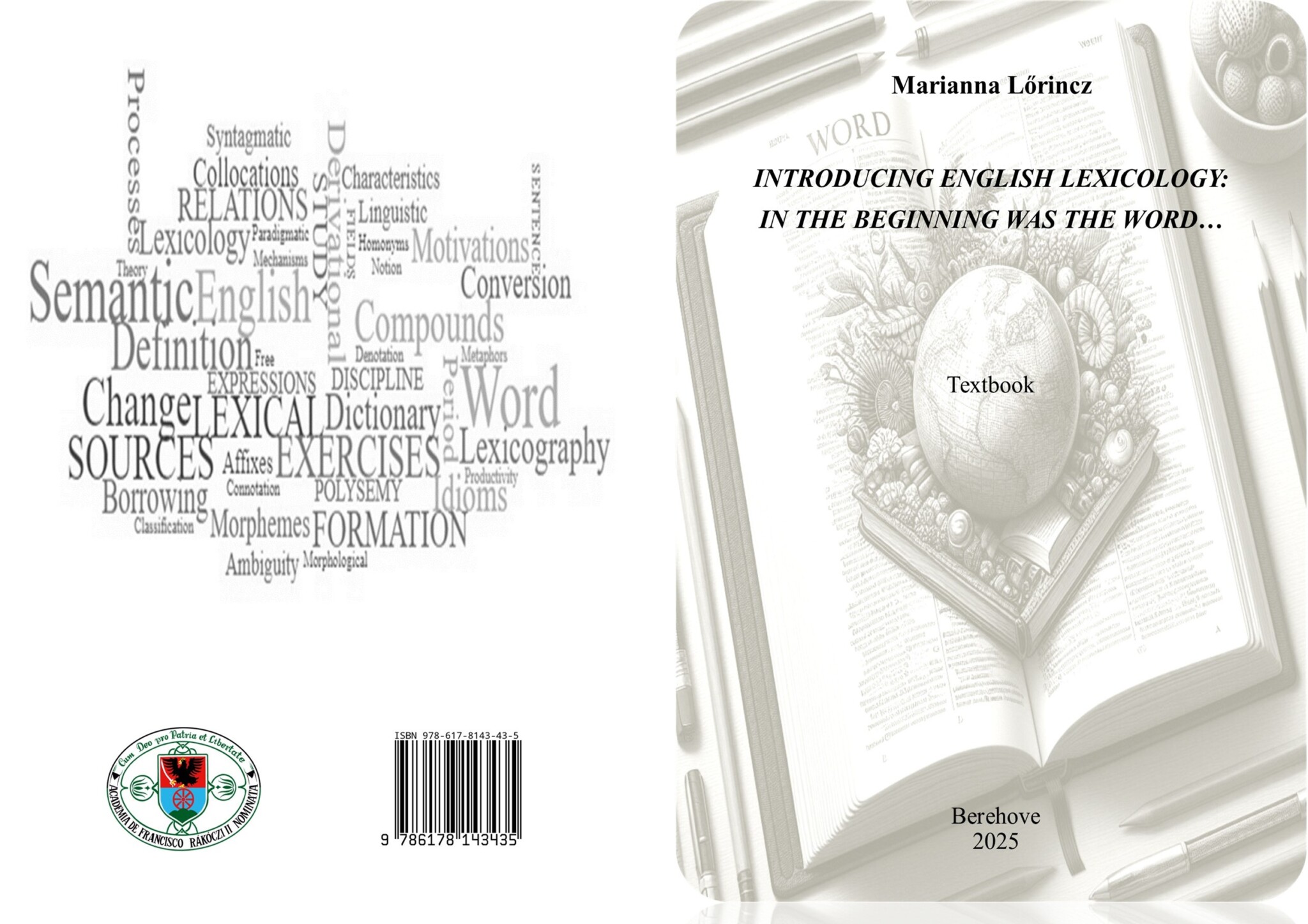 Вступ до лексикології англійської мови: Спочатку було слово… Навчальне видання (підручник) Закарпатського угорського інституту імені Ференца Ракоці ІІ / Автор: Маріанна Леврінц. Берегове: ЗУІ ім. Ференца Ракоці ІІ, 2025. 282 с. (англійською мовою)