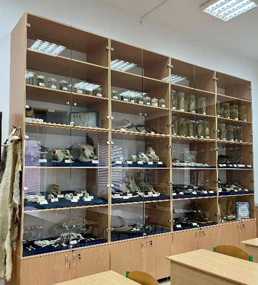 Зоологічний спеціалізований кабінет призначений для вивчення різноманіття тваринного світу, анатомії, фізіології та екології представників різних таксономічних груп. Це простір, де студенти можуть безпосередньо ознайомитися з будовою та особливостями тварин на основі візуальних та практичних методів дослідження.