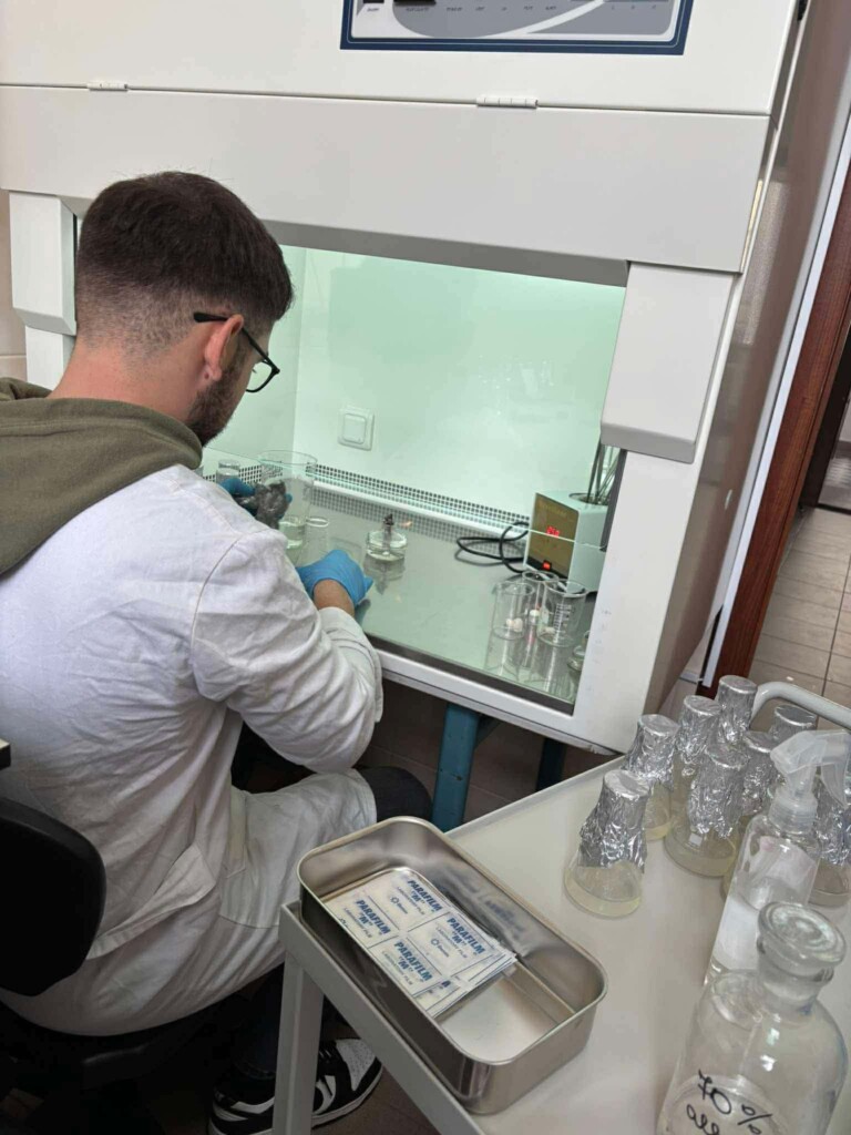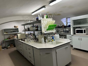 Лабораторія також містить весь необхідний загальний та спеціалізований інвентар для підготовки органічних і біохімічних зразків: скляний посуд, піпетки, ваги, водяні бані, нагрівальні плити та інше обладнання, потрібне для точної та безпечної роботи. Організація простору забезпечує належні умови як для підготовчих, так і для аналітичних процедур.