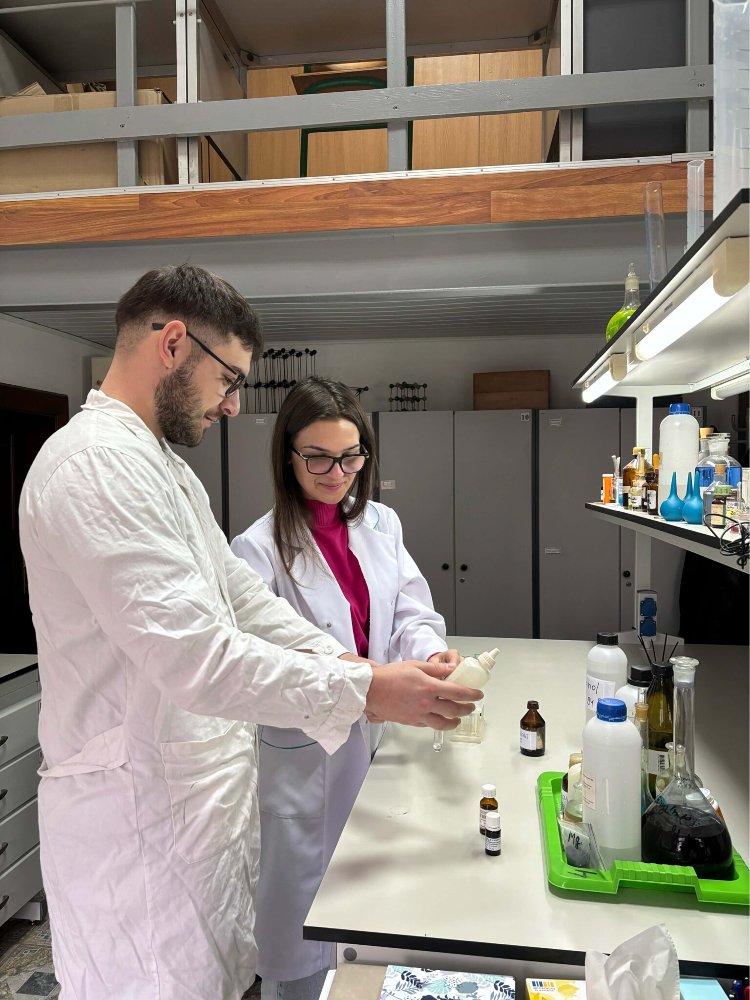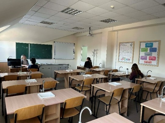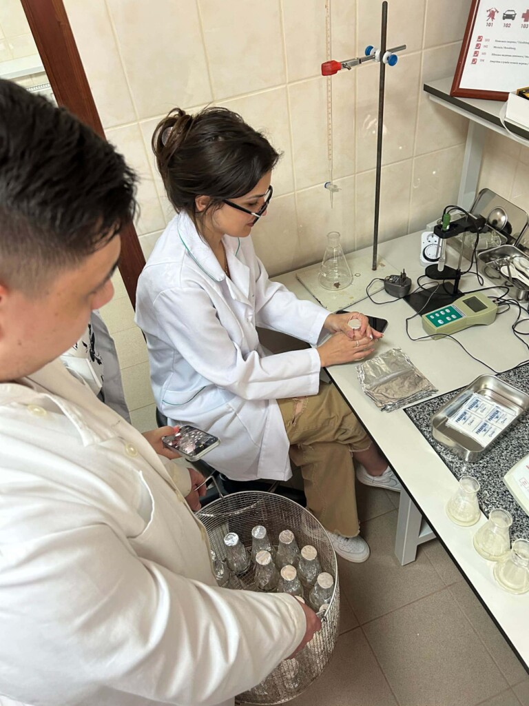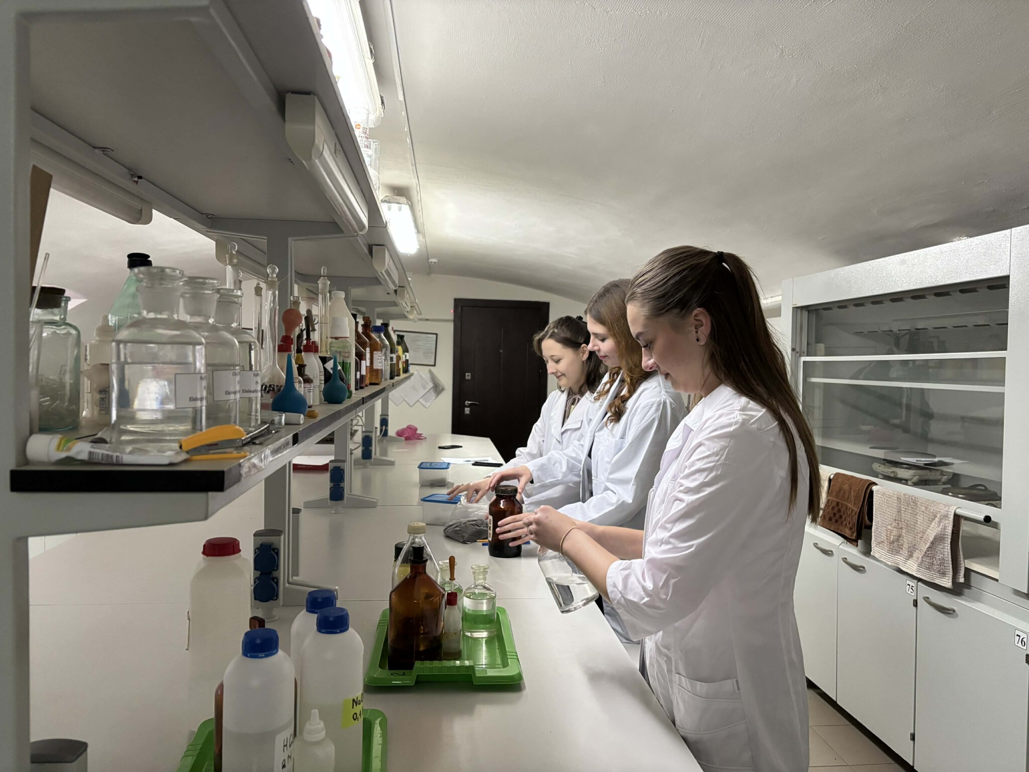 Під час лабораторних робіт особлива увага приділяється питанням безпеки. Робота з небезпечними або леткими речовинами проводиться виключно у витяжній шафі, що забезпечує контрольовані та безпечні умови. У лабораторії також наявні всі необхідні засоби безпеки та оснащення, що дозволяє виконувати хімічні дослідження відповідально та згідно з правилами.