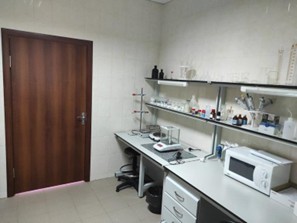 Кімната для приготування живильних середовищ для приготування та точного дозування поживних середовищ. Основне обладнання: шафи для реагентів, магнітні мішалки, електроплитки, аналітичні ваги, автоматичний піпета-дозатор, тощо.