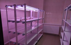 «Світлова» кімната призначена для росту рослин за контрольованого освітлення та температури. Основне обладнання: стелажі з металевими полками, спеціальні лампи для фотосинтезу, реле часу, УФ-лампа/ бактерицидна лампа, термометр..