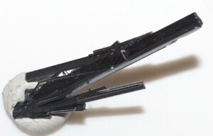 Карибібіт / Karibibite (найнижча полиця), рідкісний залізовмісний мінерал. - шафа: Aнтимоніт / Stibnite (4. полиця), рідкісний мінерал.