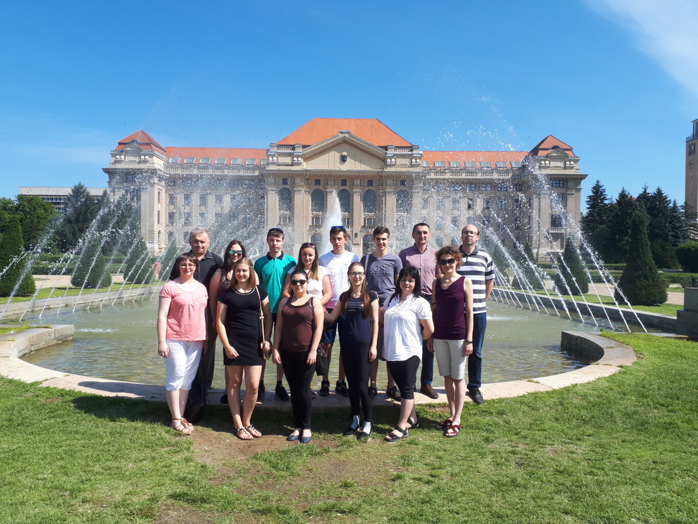 Під час відвідин кафедри математики Дебреценського університету завідувач кафедри Чобо Вінце розказав про історію кафедри, про можливості публікацій та культурних заходів закладу а також про сучасні дослідницькі напрями Докторської школи Математики та Комп’ютерних наук. Про дидактичну програму розказала Естер Конья. Після цього за допомогою Андраша Бажо і телефонної програми із відповідними QR кодами відвідали визначні місця з історії університету.