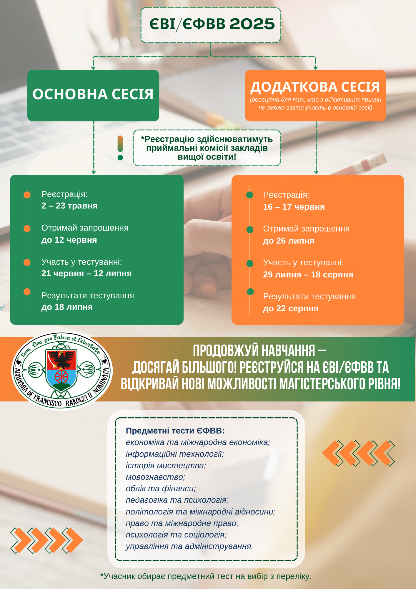 Єдиний вступний іспит (ЄВІ) та Єдине фахове вступне випробування (ЄФВВ) 2025